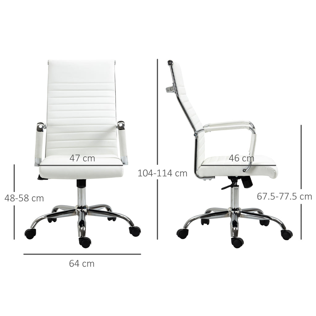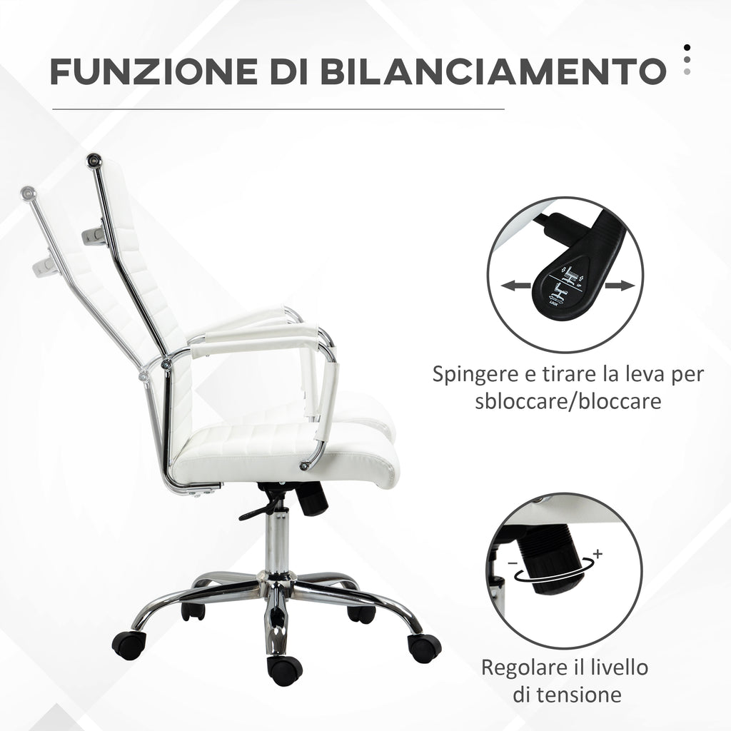 Sedia da Ufficio Ergonomica Funzione Dondolo 54x62x104-114 cm in Finta Pelle Bianco