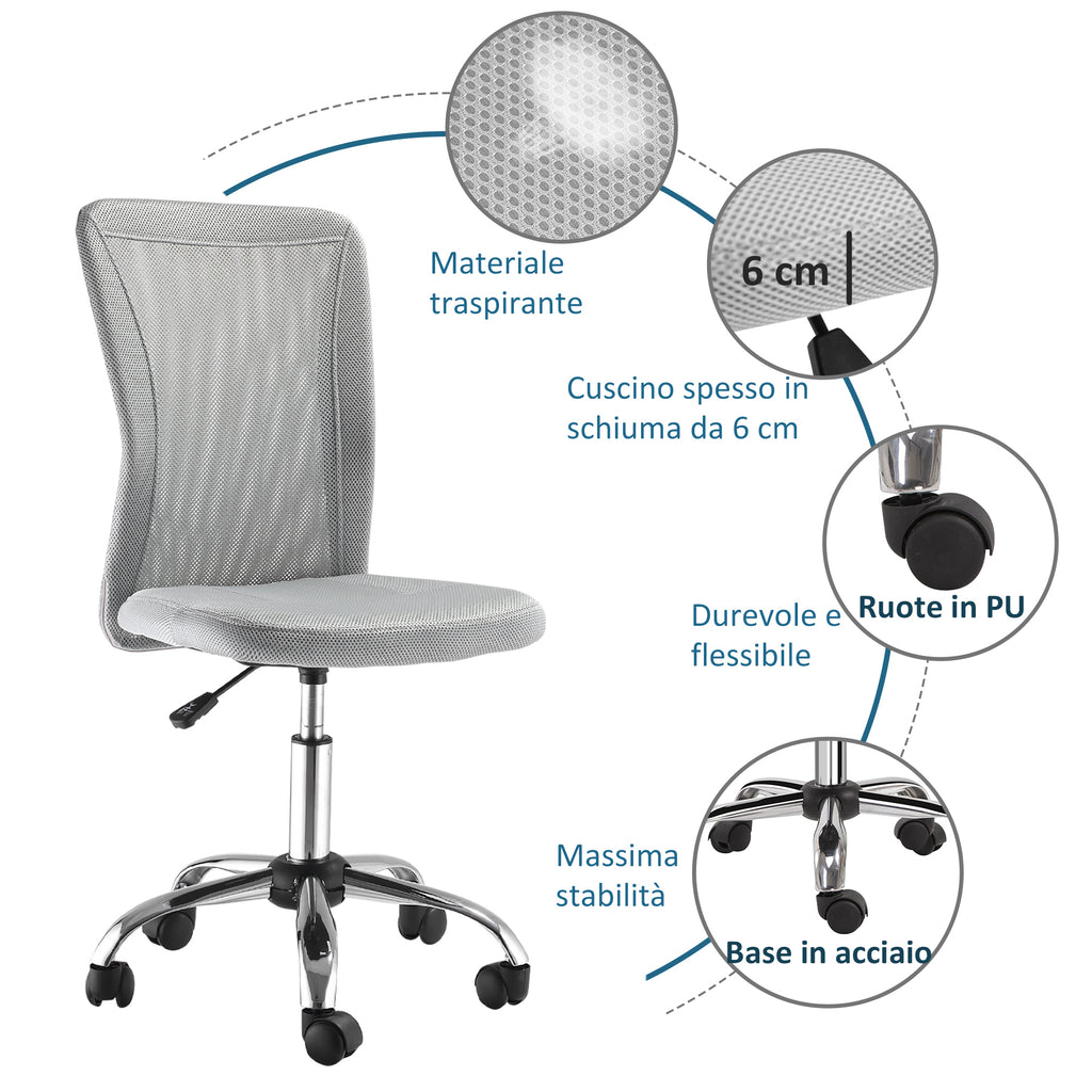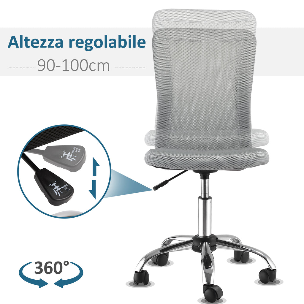 Sedia da Ufficio Ergonomica Senza Braccioli 43x58x90-100 cm in Tessuto a Rete Grigio