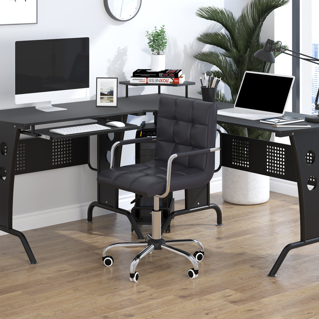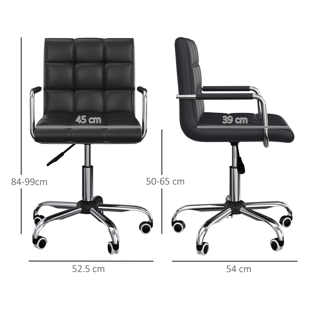 Sedia da Ufficio Operativa Girevole con Braccioli in Similpelle Nero