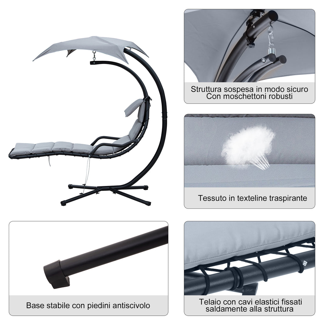 Sedia Dondolo Pensile Relax Chaise Longue di Lusso con Tettuccio Grigio