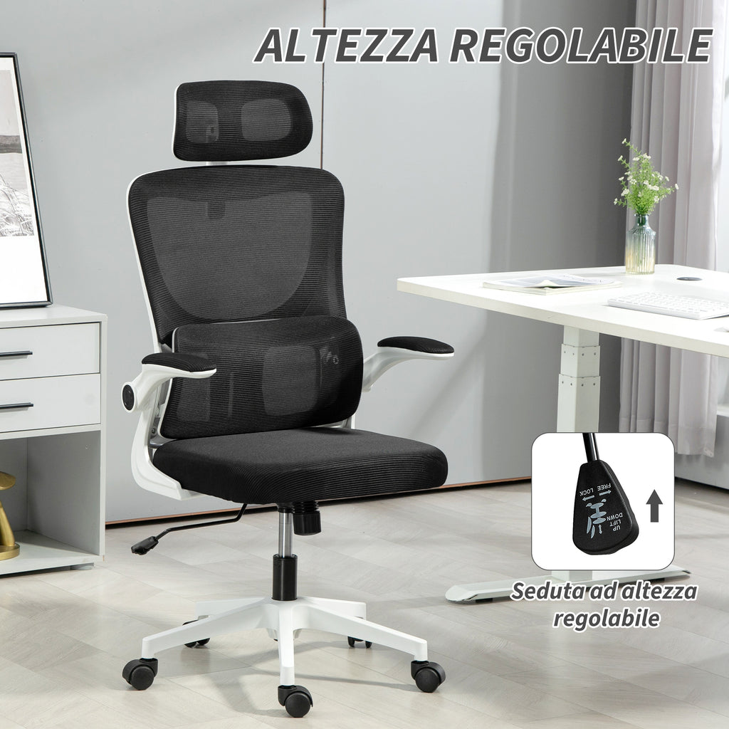 Sedia Ergonomica da Ufficio Girevole 60x59x114-122 cm con Poggiatesta Rimovibile in Tessuto a Rete Nero