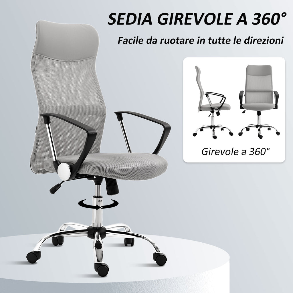 Sedia Ergonomica da Ufficio Girevole 63x65x109-119 cm con Schienale a Rete Grigio Chiaro