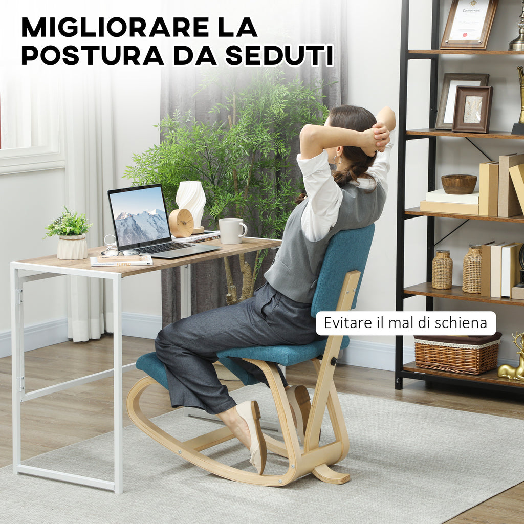 Sedia Ergonomica Inginocchiatoio con Schienale 51x84x93 cm in Legno di Betulla e Cuscini Blu