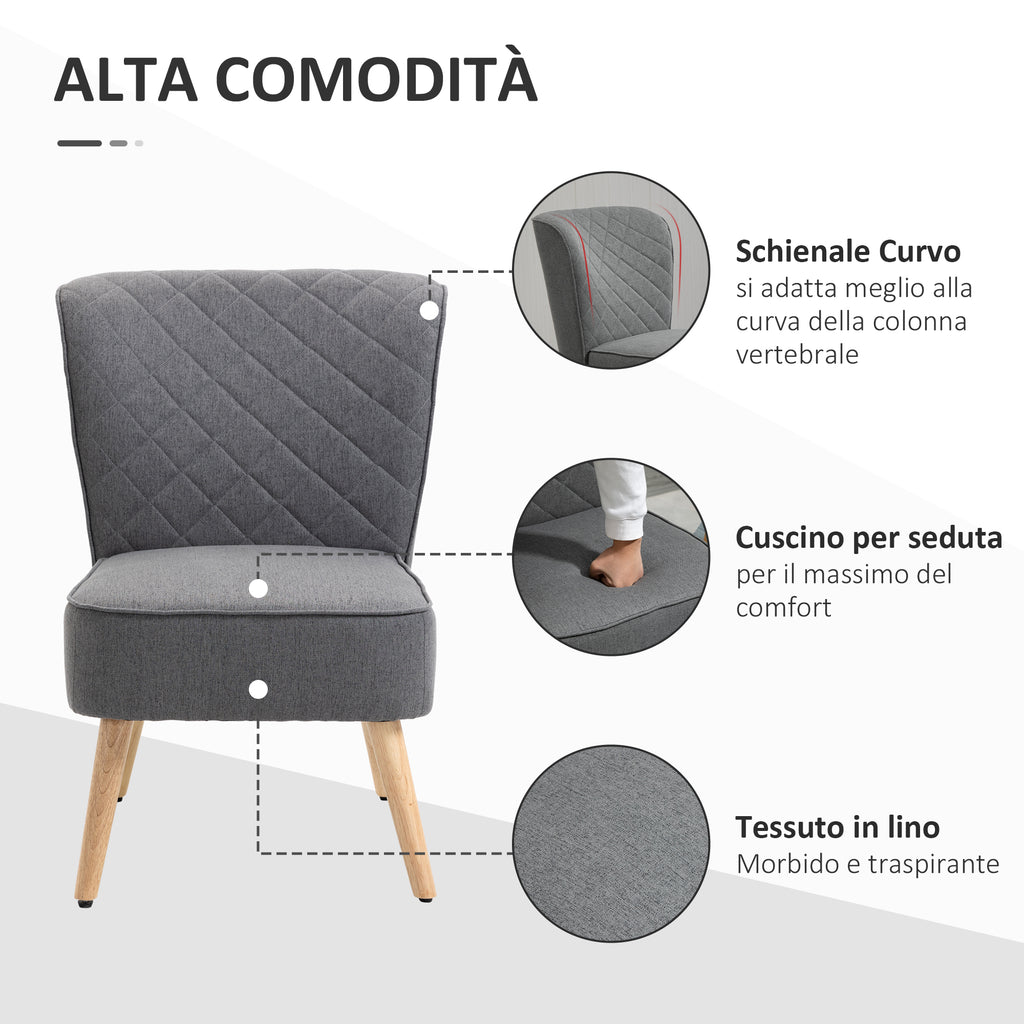 Sedia Imbottita 61x69x85 cm in Tessuto Effetto Lino Grigio Chiaro