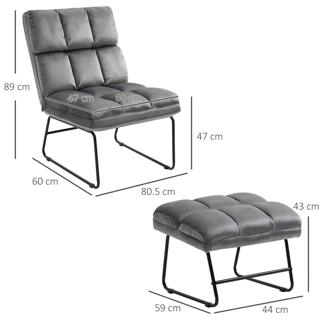 Sedia Imbottita con Poggiapiedi 60x80,5x89 cm in Tessuto Effetto Velluto Grigio