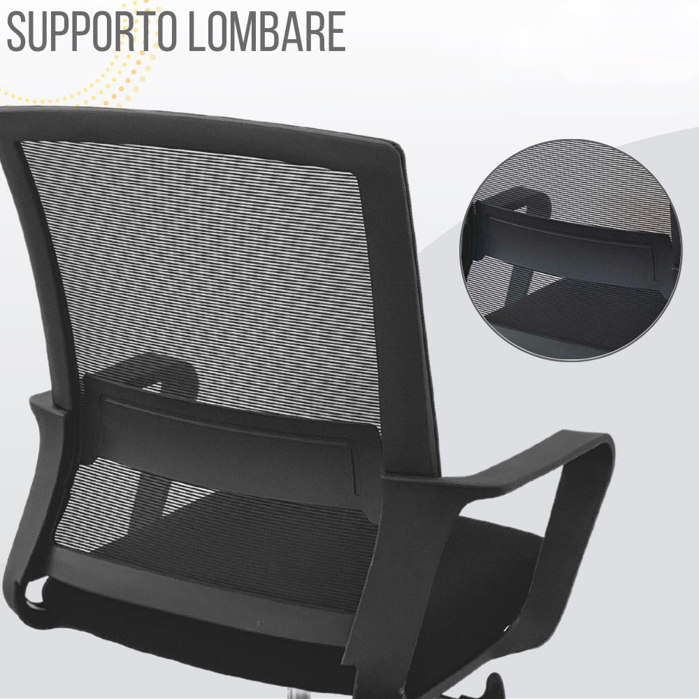 Sedia Operativa da Ufficio 45x51x94/100h cm Ergonomica con Supporto Lombare Nera