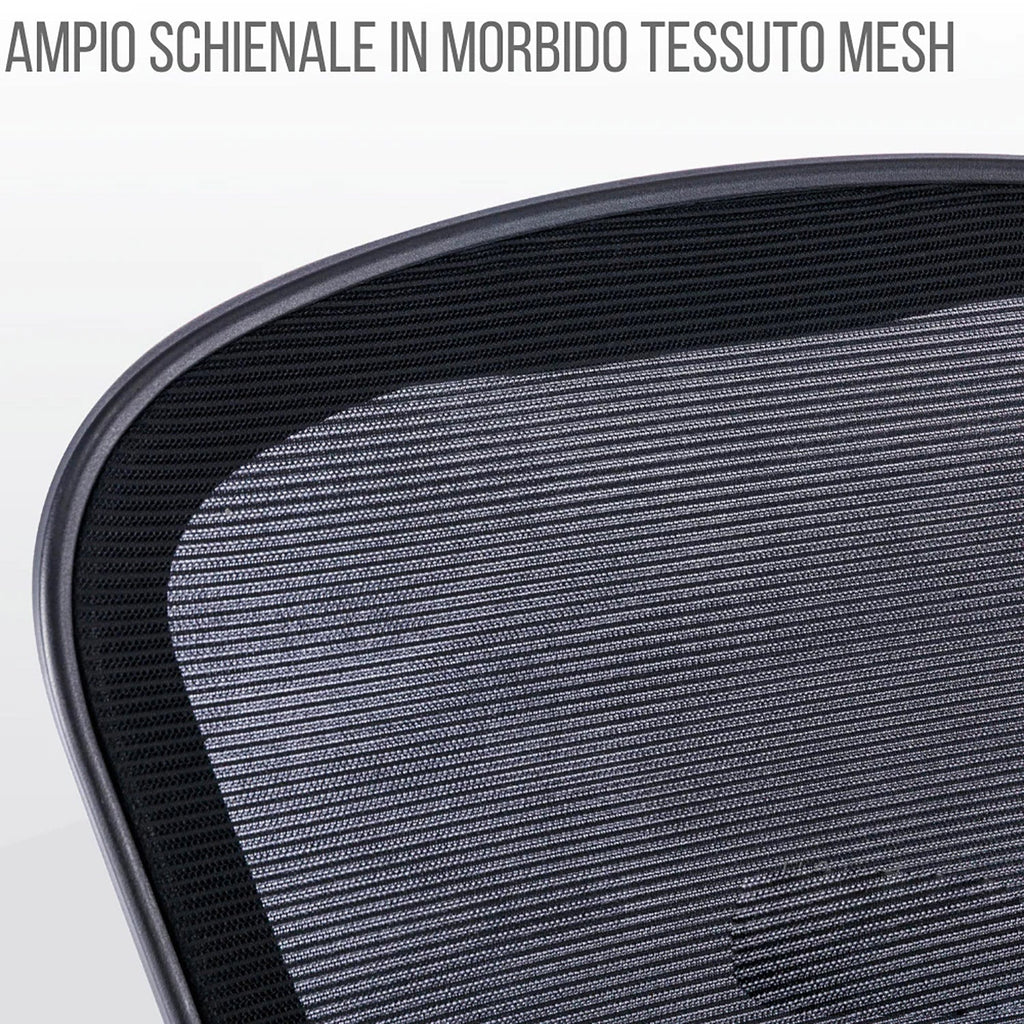Poltrona da ufficio comoda, ergonomica ed esclusiva realizzata in tessuto traspirante a doppio strato, poltrona l'ideale per chi cerca comfort in ufficio o durante lo studio.Sedia da ufficio completa di schienale oscillante con funzione Lock/Unlock: indispensabile per bloccare schienale e seduta nella posizione desiderata. Il supporto lombare regolabile rende questa poltrona da ufficio ancor più ergonomica, con una semplice maniglia a scatto sarà possibile regolare la posizione del supporto lombare; i poggiabraccia reclinabili dalla morbida imbottitura e rotazione a fino a 90° consentiranno di lavorare reiteratamente senza avvertire fastidi o stanchezza, eliminando i fastidi delle cattive posture. Comoda e avvolgente sedia da ufficio dall'imbottitura Mesh ad alta resistenza, le 5 ruote consentono una celere e pratico spostamento su qualsiasi superficie: tappeti, pavimento moquette o parquet.Lavorare assistiti da questa comoda sedia da ufficio risulterà un vero piacere, perfetta per l'utilizzo a casa in ufficio o studio.