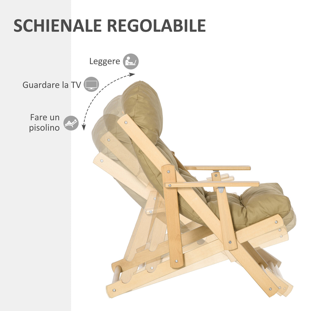 Sedia Pieghevole con Braccioli e Cuscino 71x89x96 cm in Legno di Faggio e Tessuto Marrone