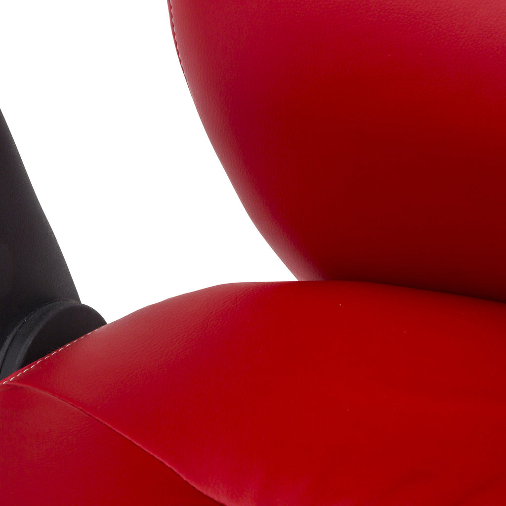 - Seduta e schienale con imbottitura in poliuretano e rivestimento in similpelle rossa con cuciture in contrasto