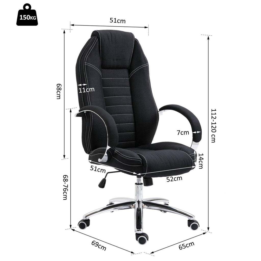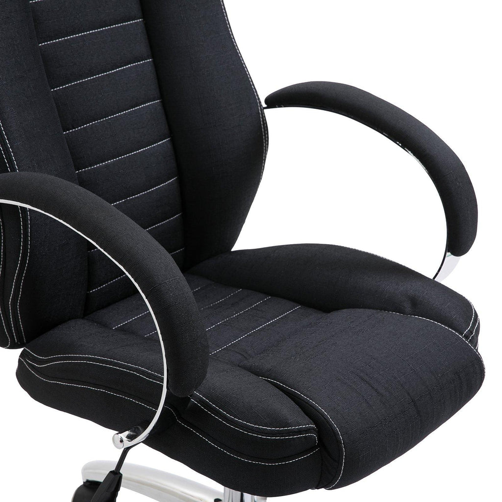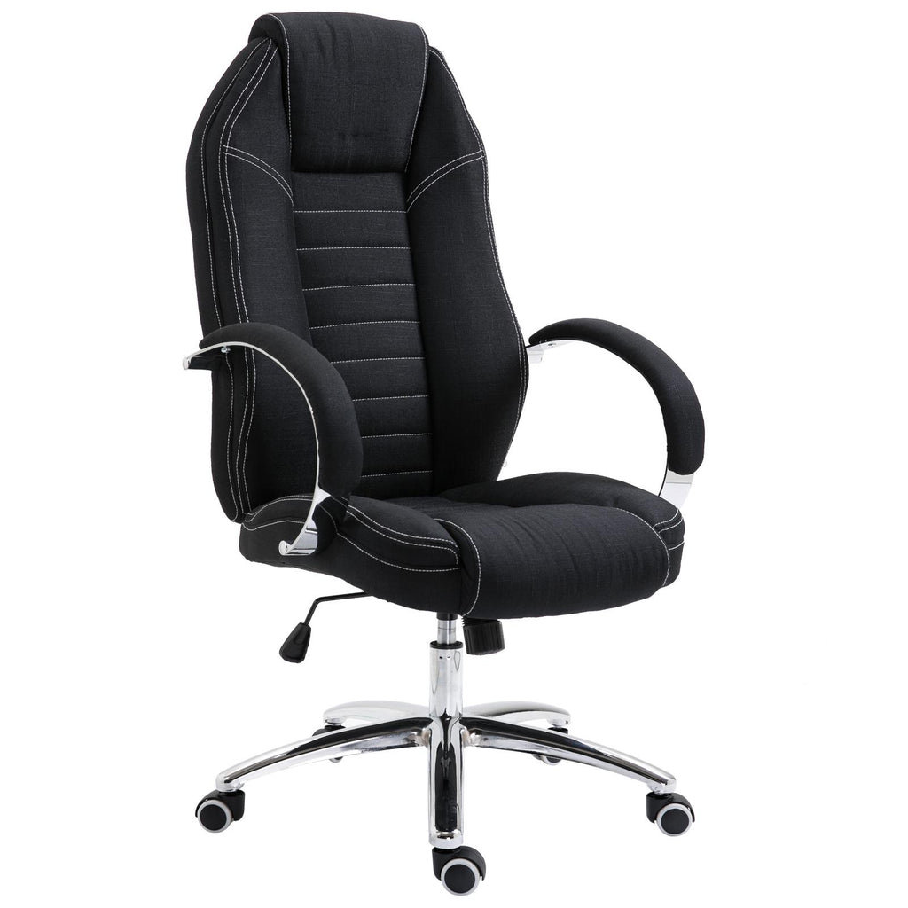 Sedia Poltrona da Ufficio Presidenziale Girevole in Lino Traspirante Nero
