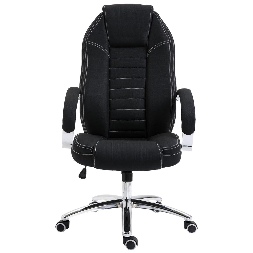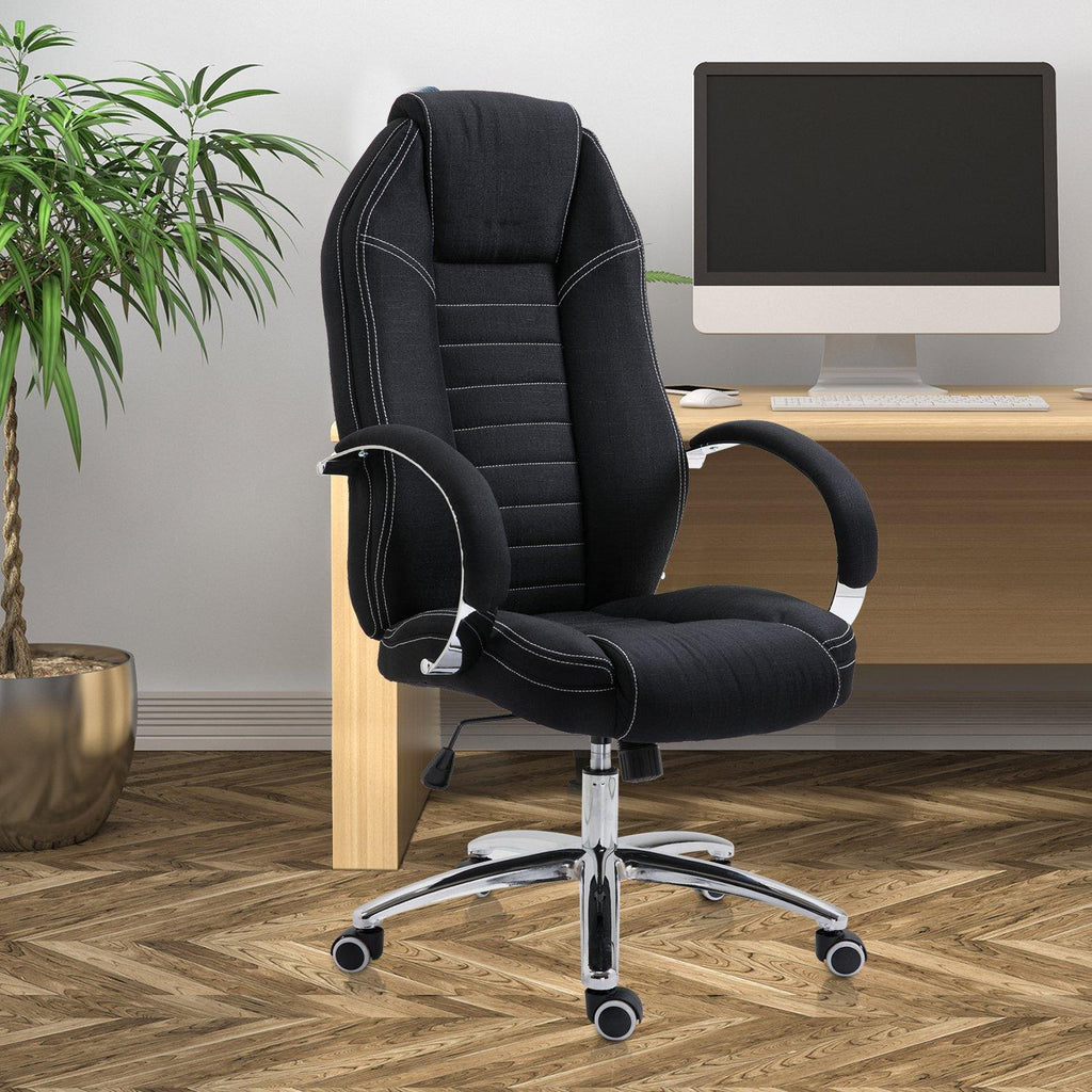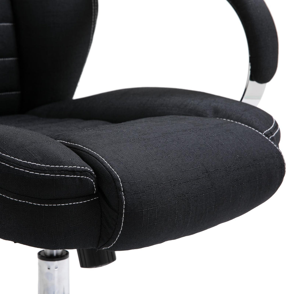 Sedia Poltrona da Ufficio Presidenziale Girevole in Lino Traspirante Nero