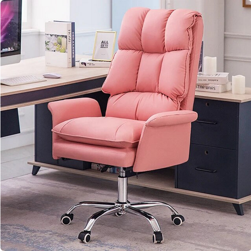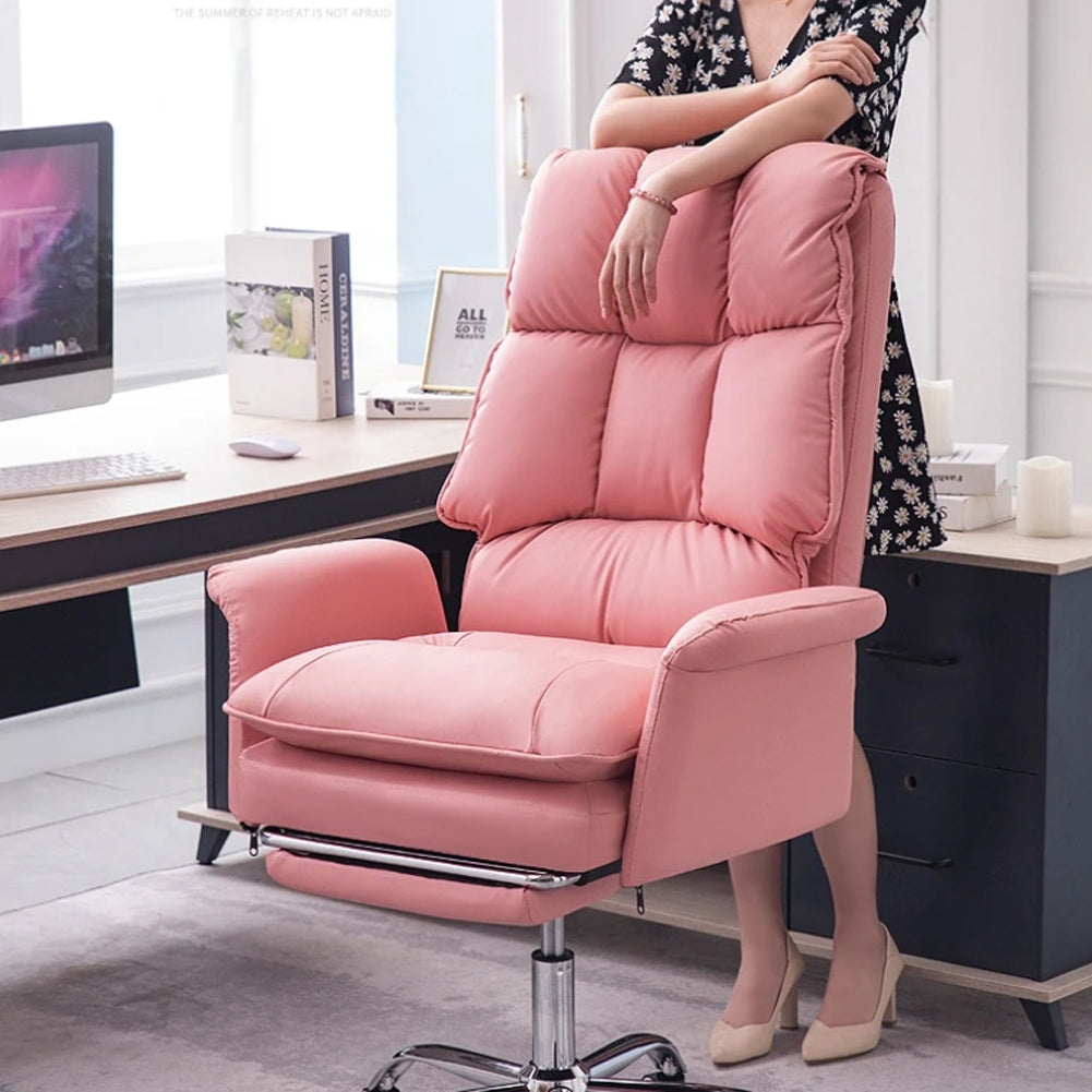 Sedia Poltrona da Ufficio Presidenziale Imbottita con Poggiapiedi Rosa