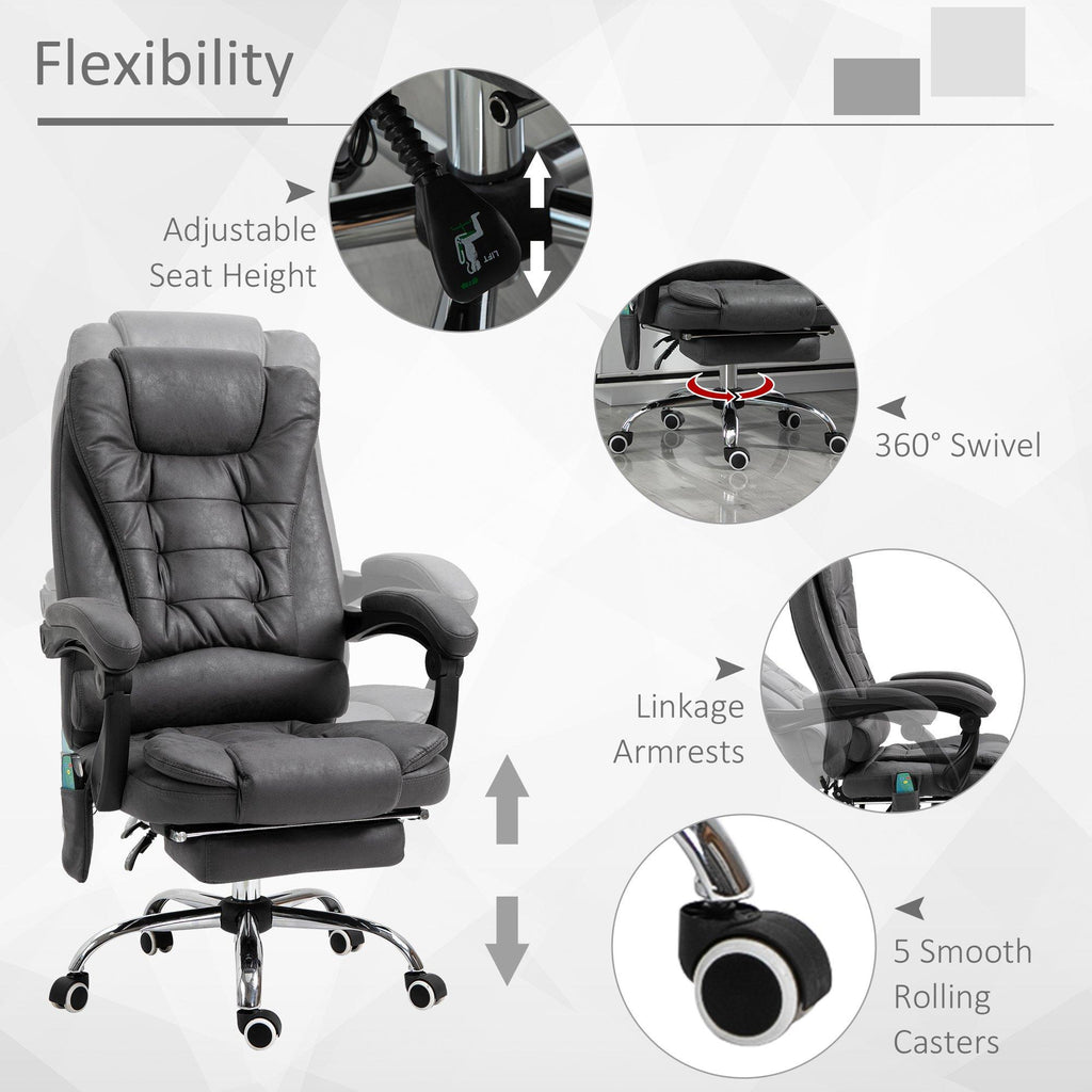 Sedia Poltrona da Ufficio Presidenziale Massaggiante in Similpelle Grigio Scuro