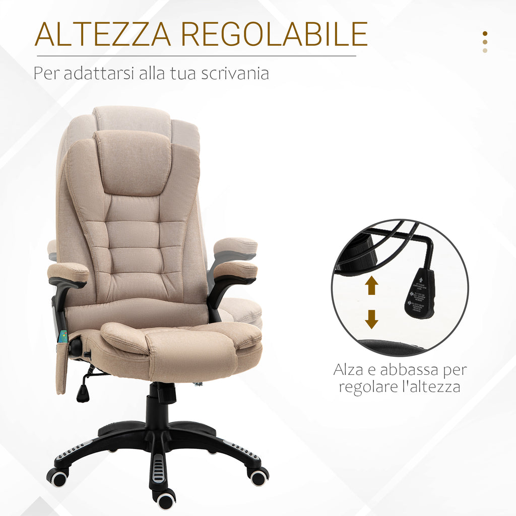 Sedia Poltrona da Ufficio Presidenziale Massaggiante in Tessuto Beige