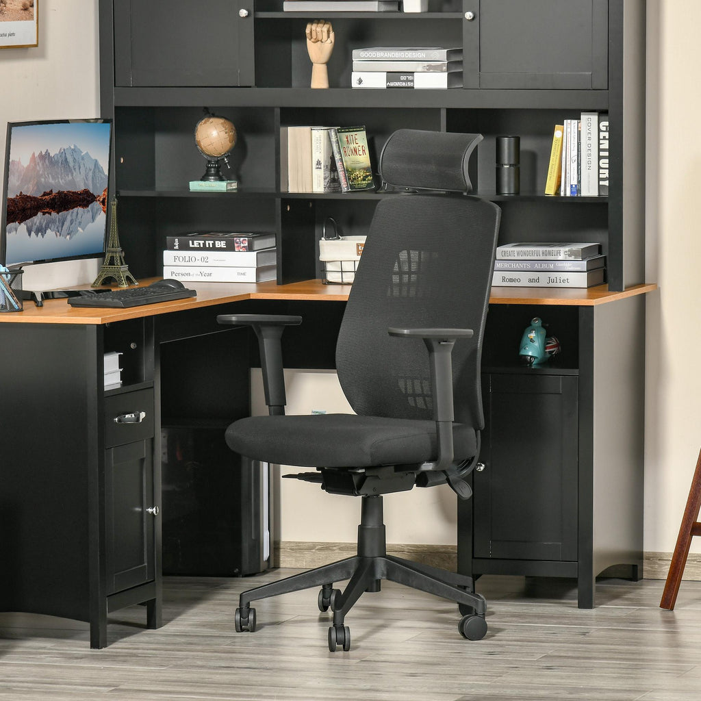 Sedia Poltrona Direzionale da Ufficio 67x64x118-126 cm in Tessuto a Rete Nero