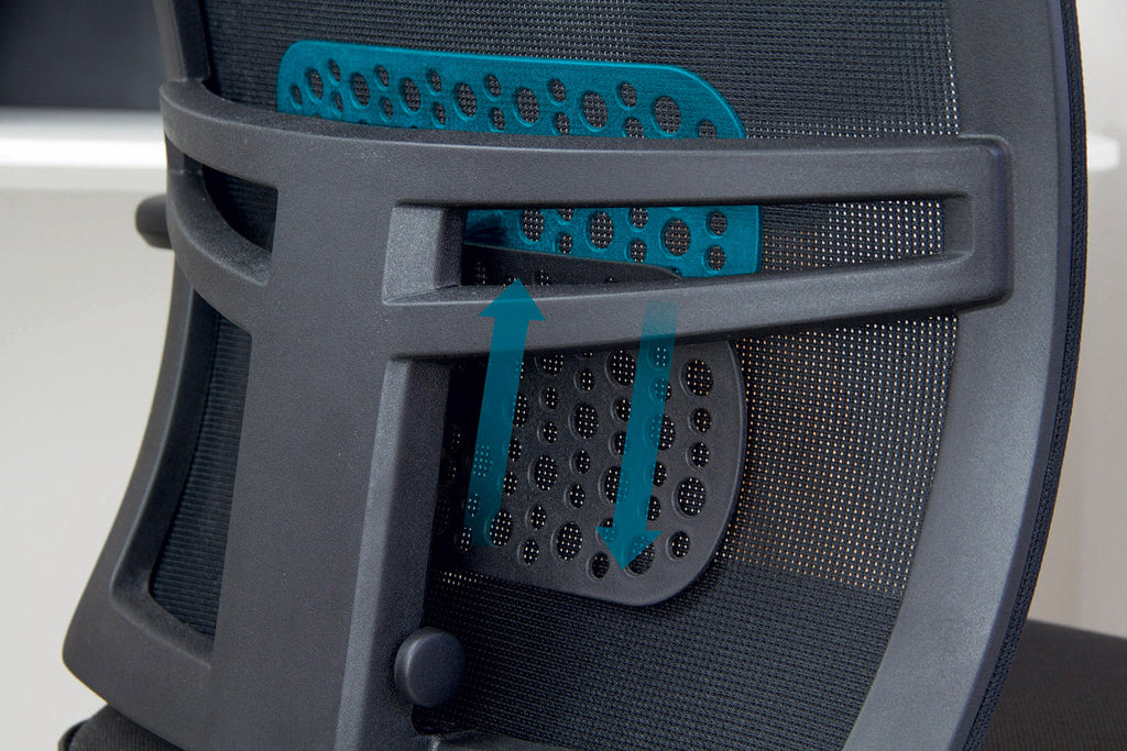 Sedia Direzionale ergonomica da ufficio con schienale in rete traspirante con cornice dalla linea elegante e contemporanea. Dotata di supporto lombare e poggiatesta entrambi regolabili in altezza secondo le esigenze dell’utilizzatore.