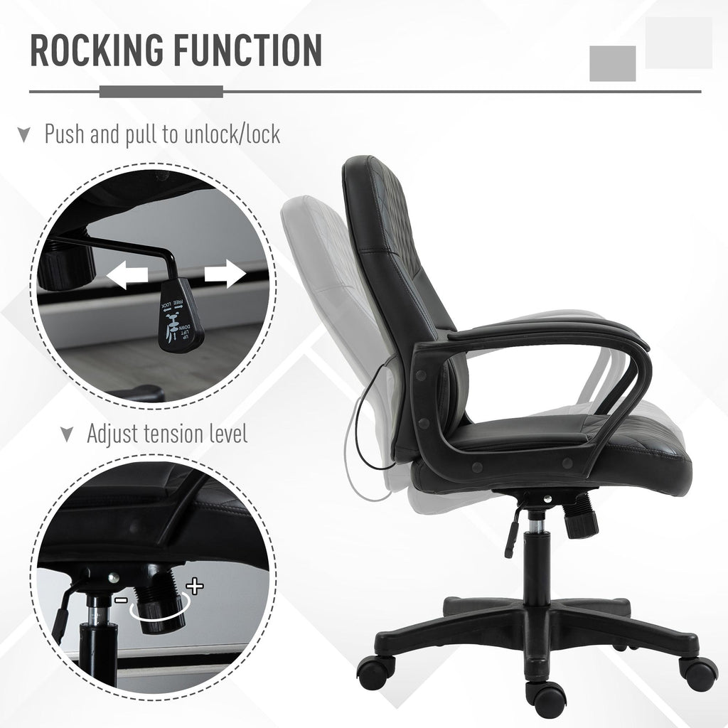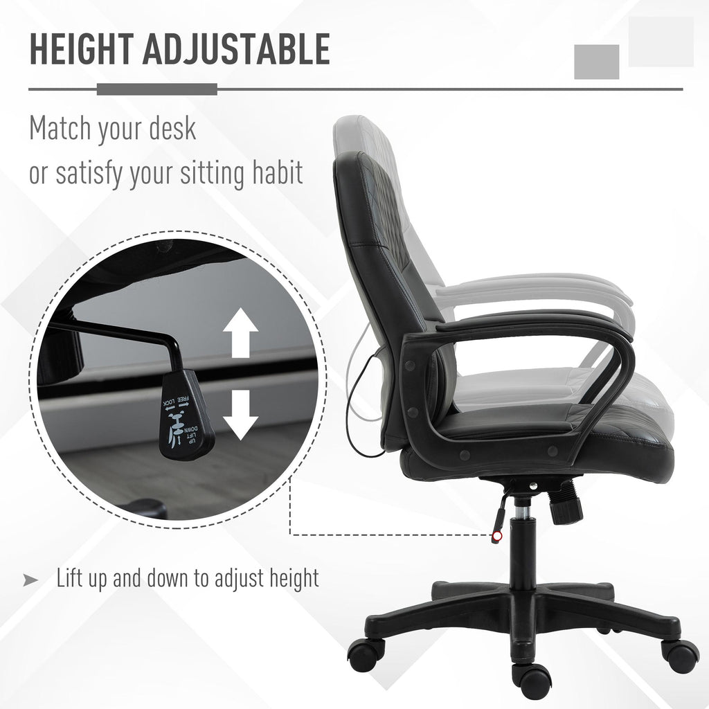 Riunione pesante? Ritrova la concentrazione con un bel massaggio. Sì, perché questa sedia da ufficio ha 2 punti massaggianti posizionati nell'area lombare: ti aiutano a sciogliere lo stress e tutta la tensione accumulata durante la giornata. In più, grazie al suo design ergonomico, alla spessa imbottitura in gommapiuma e al rivestimento in similpelle nera, non dovrai più rinunciare al comfort.