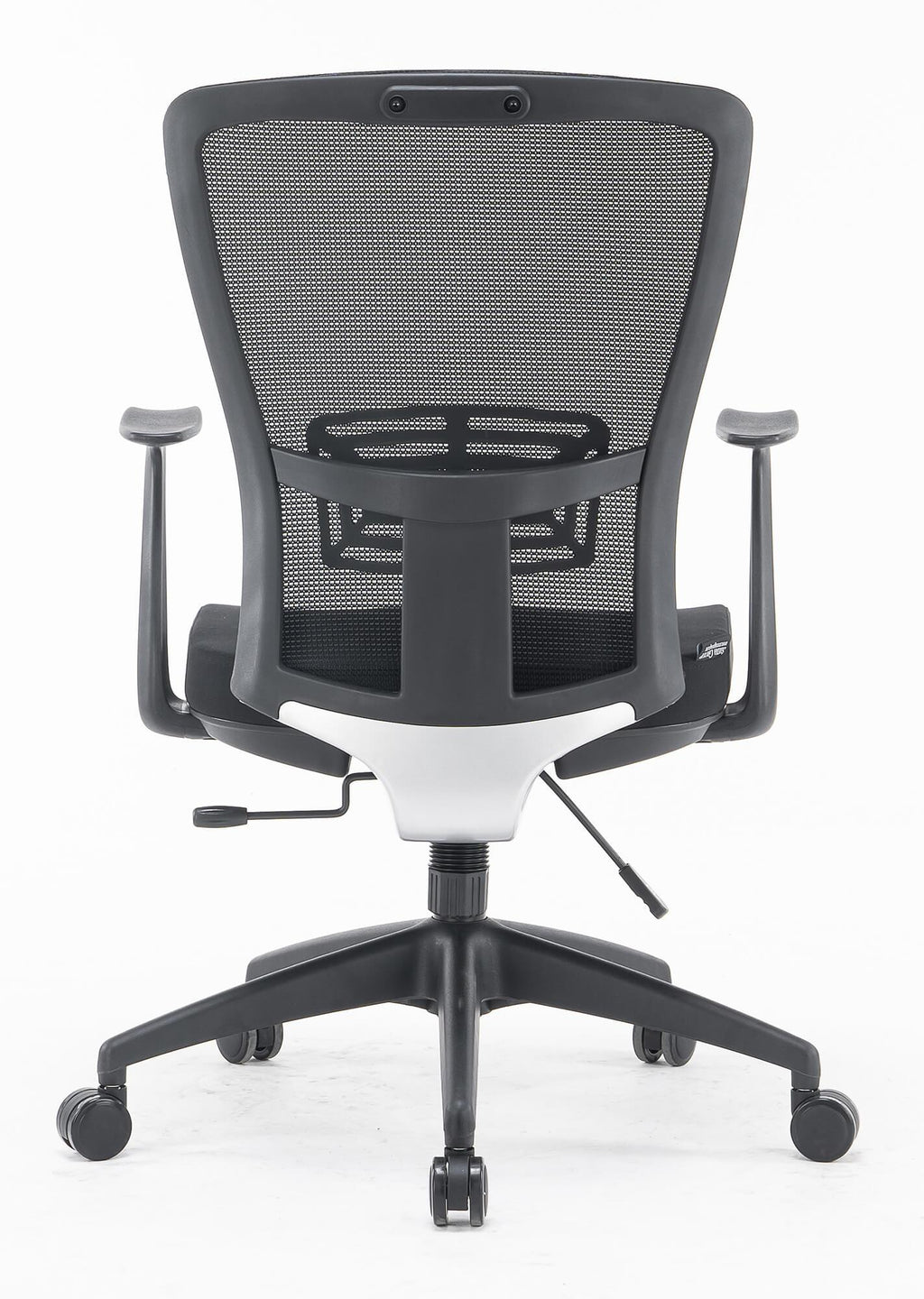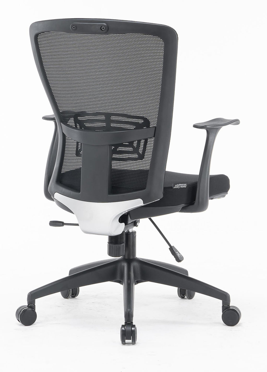 - Schienale regolabile in rete tecnica traspirante nera con contatto permanente bloccabile