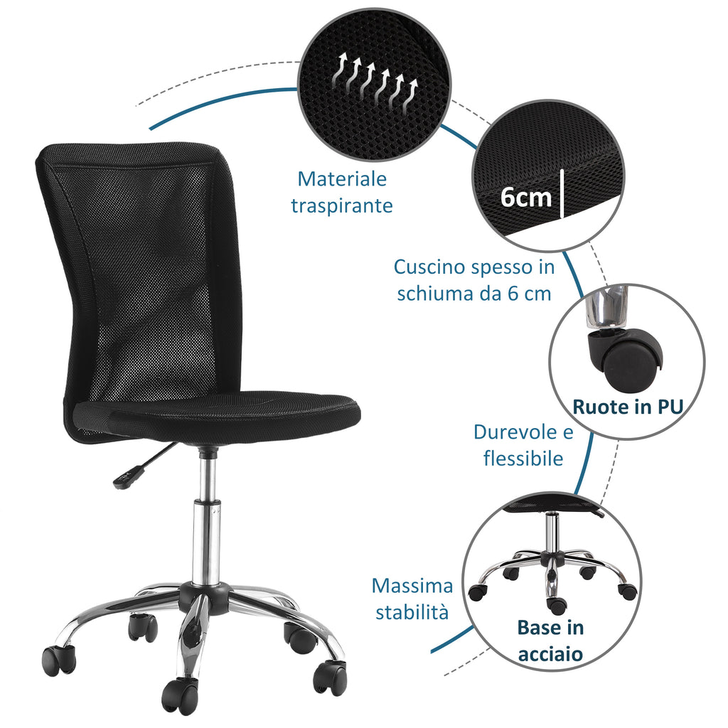 - DESIGN COMPATTO: Sedia da ufficio compatta perfetta per spazi piccoli. Design senza braccioli che ti permette di riporla completamente sotto alla scrivania.