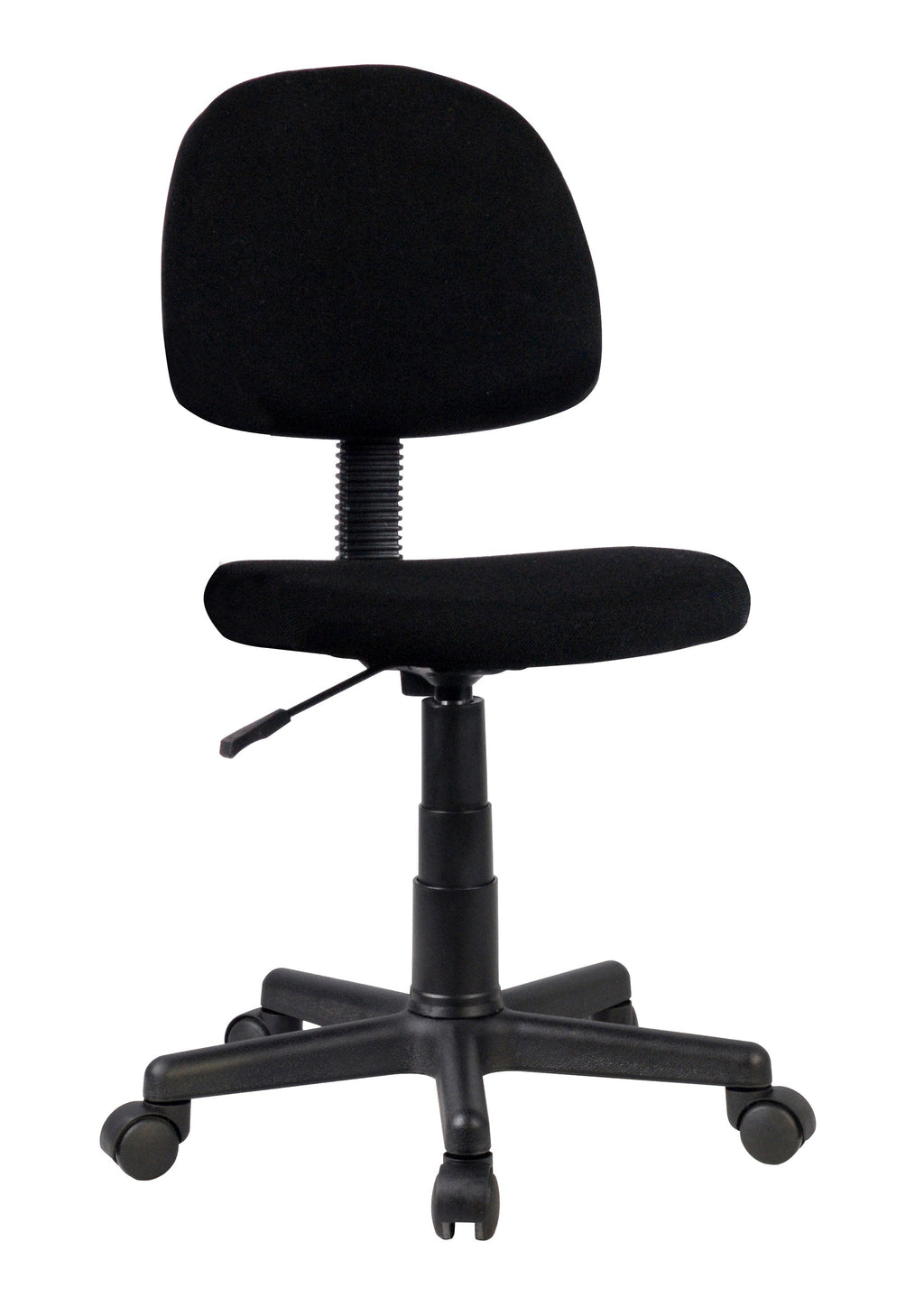 Sedia da scrivania senza braccioli dal design semplice ed essenziale, si integra bene ad altri mobili di casa o dell'ufficio. Grazie ad una leva presente nella parte inferiore della seduta è possibile regolare in modo semplice l'altezza della stessa. L'intero sedile può ruotare a 360° facilitando quindi le operazioni di lavoro. L'imbottitura della seduta e dello schienale consente di mantenere una posizione di lavoro comoda e comfortevole. La corretta postura è inoltre favorita dalla presenza di due braccioli curvi. Il rivestimento della sedia è in tessuto microforato. Le ruote in nylon consentono un rapido spostamento della sedia.