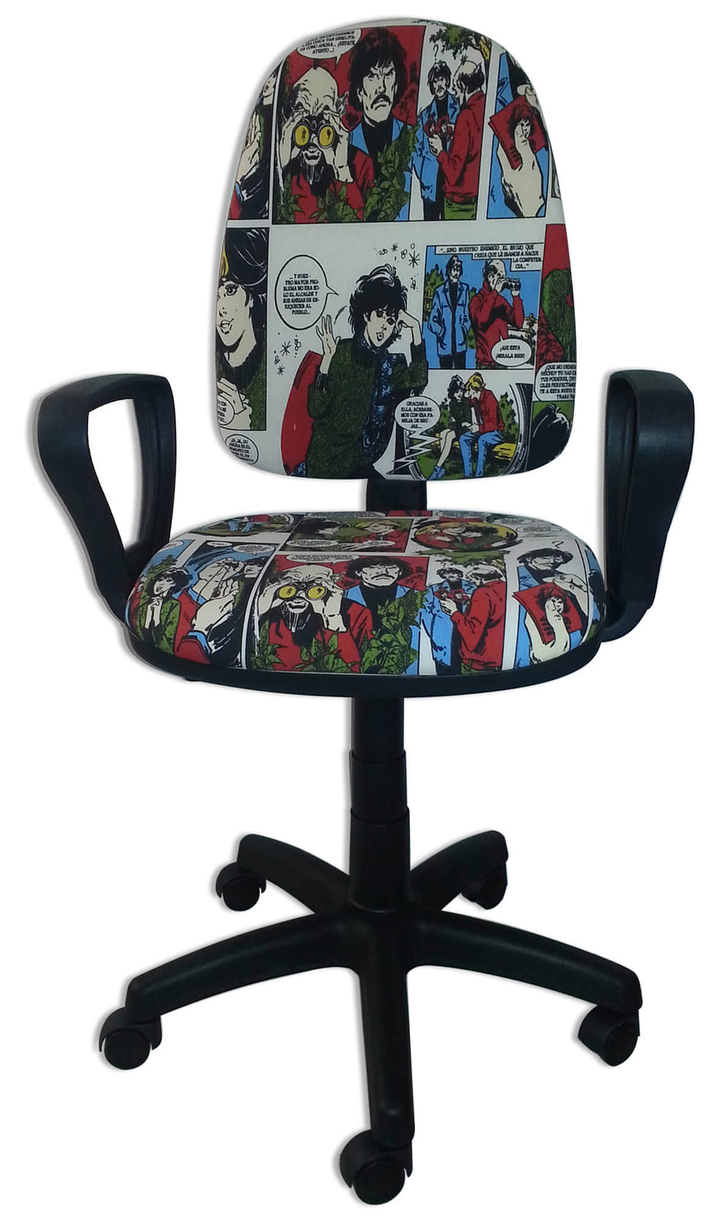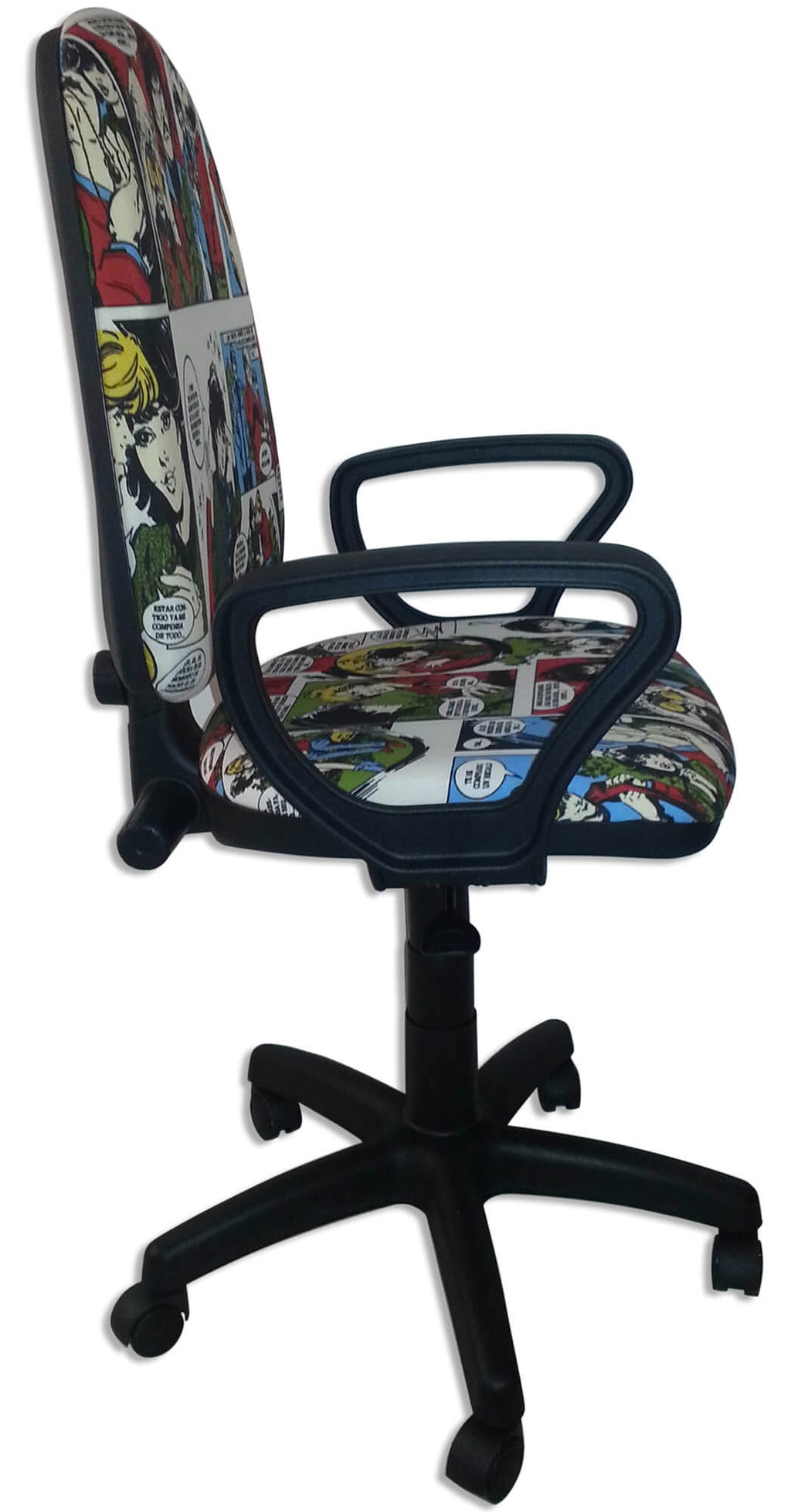 Sedia Poltrona Operativa da Ufficio con Braccioli in Tessuto Renier Fumetto Colorato