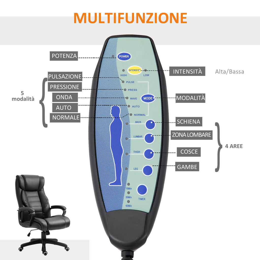 Sedia Poltrona Presidenziale Massaggiante da Ufficio in Similpelle Nera