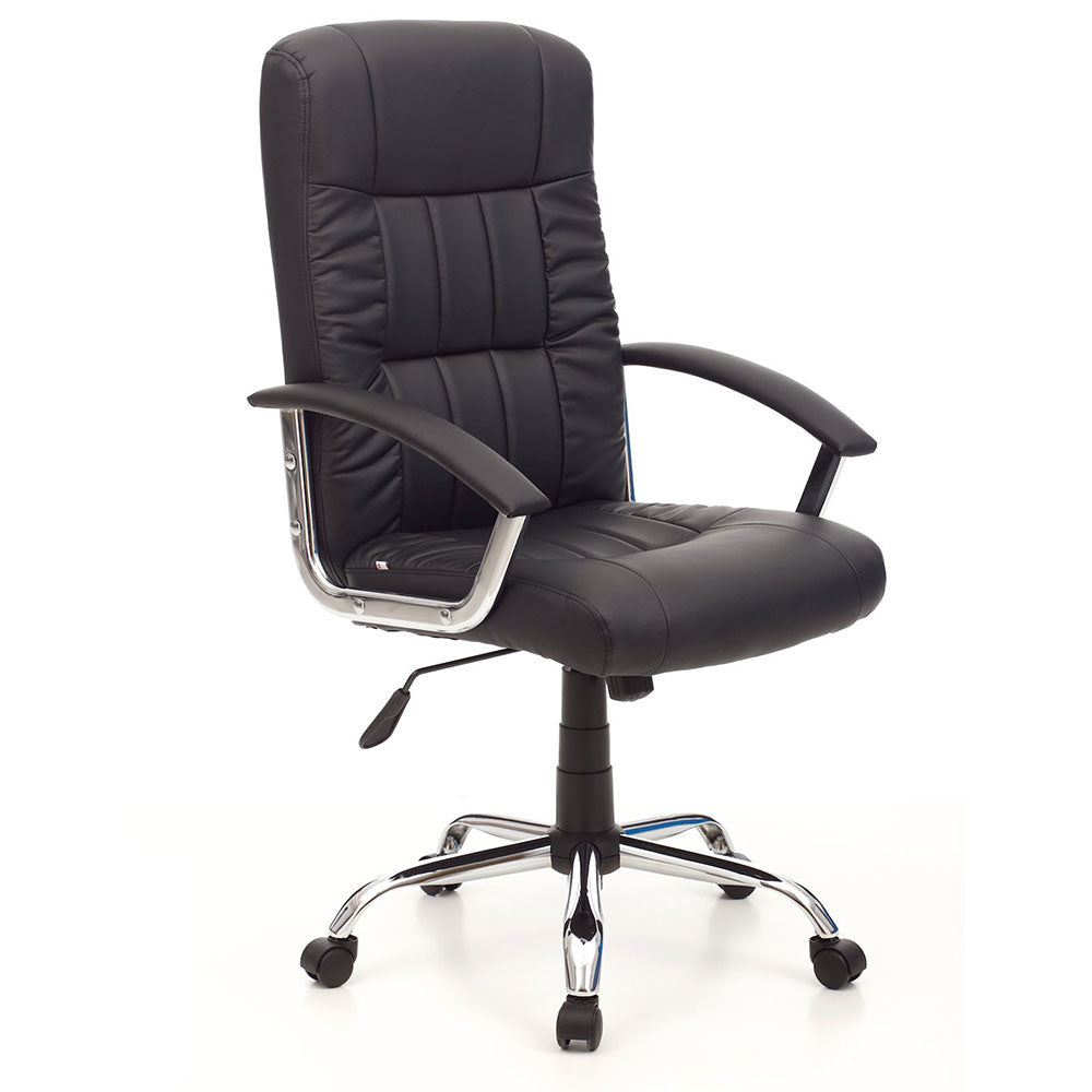Poltrona per ufficio Presidenziale Struttura in acciaio cromato, seduta e schienale con rivestimento in similpelle.