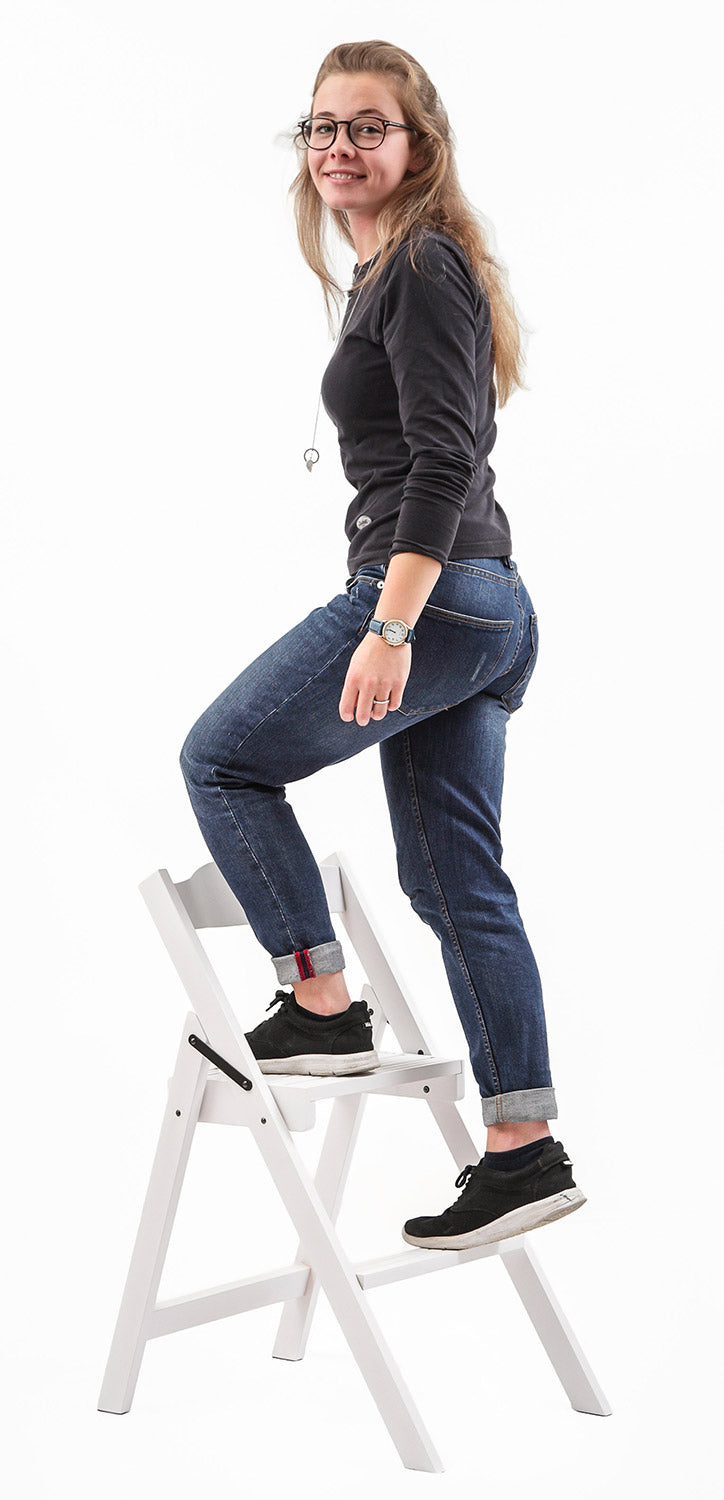Step è la sedia scala pieghevole realizzata in faggio massello, pratica, versatile e di minimo ingombro. Chiudibile velocemente e con possibilità di essere appesa al muro. Lo schienale sagomato è confortevole ed offre un punto d’appoggio nell’utilizzo come scala. Utilie in cucina e in camera per raggiungere i mobili più alti.