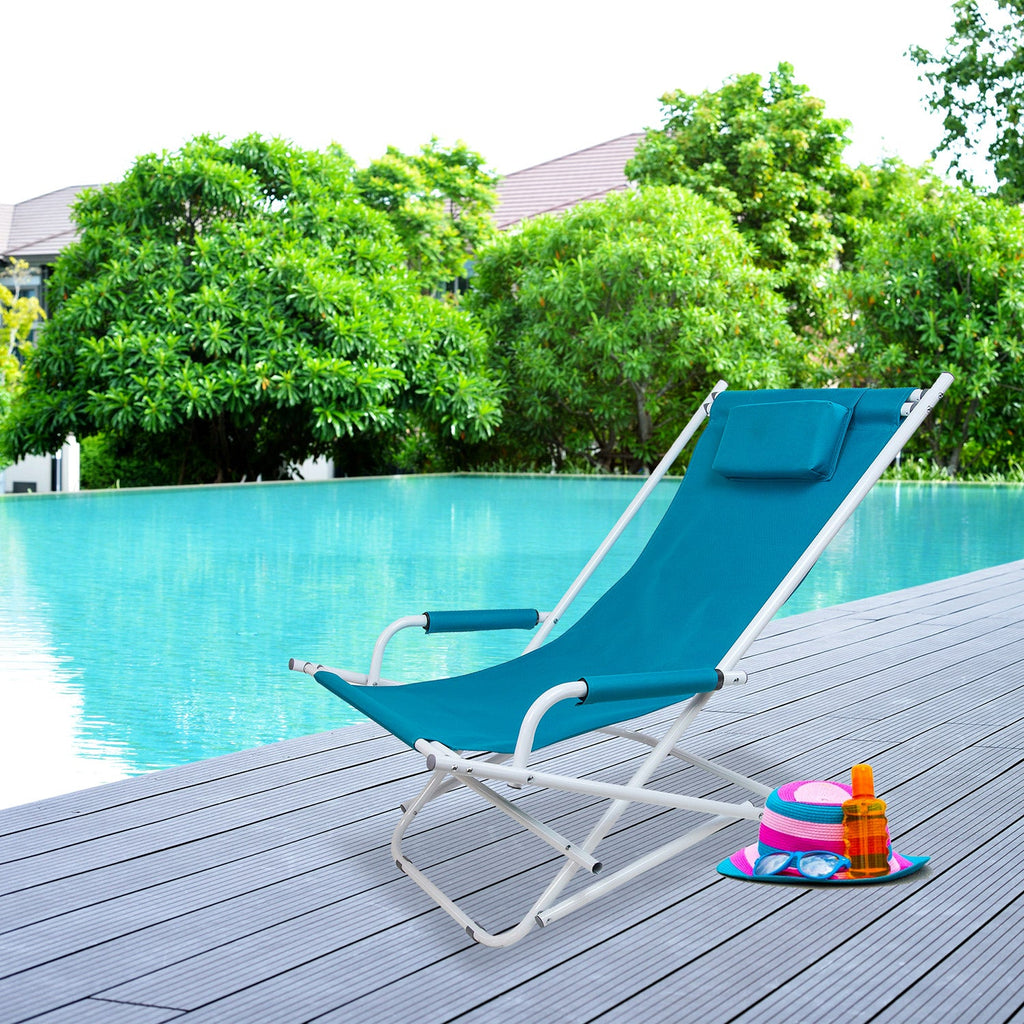 Sedia Sdraio Basculante Pieghevole 98x61x72 cm in Acciaio e Tessuto Oxford 600D Turchese