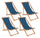 Set 4 Sedie Sdraio Reclinabile Pieghevole 60x106x88h cm in Legno Relax Noemi Blu