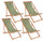 Set 4 Sedie Sdraio Reclinabile Pieghevole 60x106x88 cm in Legno Relax Noemi Muschio