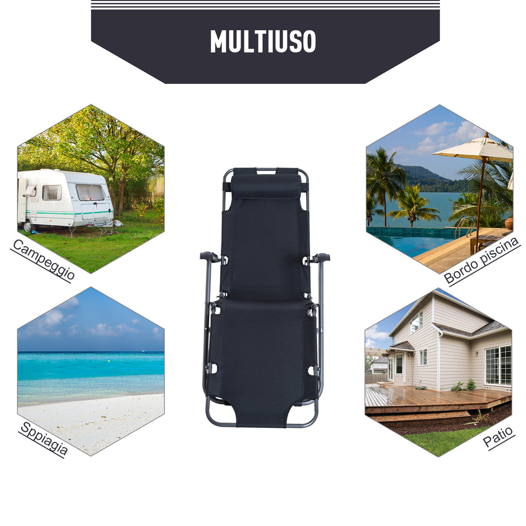 Sedia Sdraio Reclinabile Pieghevole in Metallo e Textilene Nera