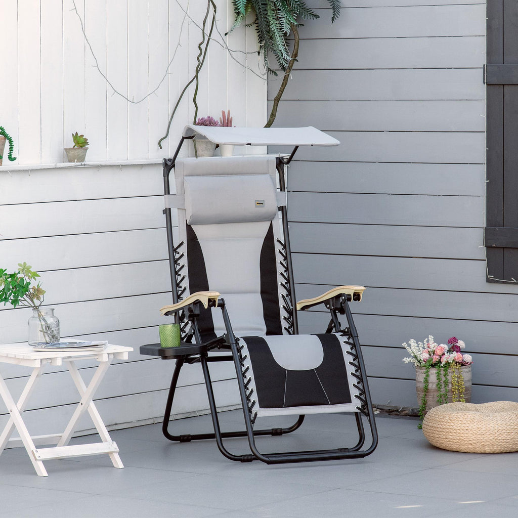 Sedia Sdraio Zero Gravity Reclinabile 89x65x113 cm in Acciaio e Tessuto Oxford Grigio Chiaro