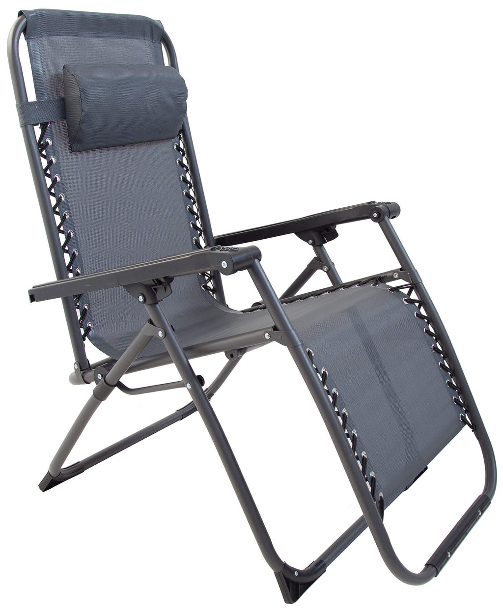 Sedia Sdraio Zero Gravity Reclinabile Pieghevole 188x65x110 cm In Acciaio e Textilene Grigia