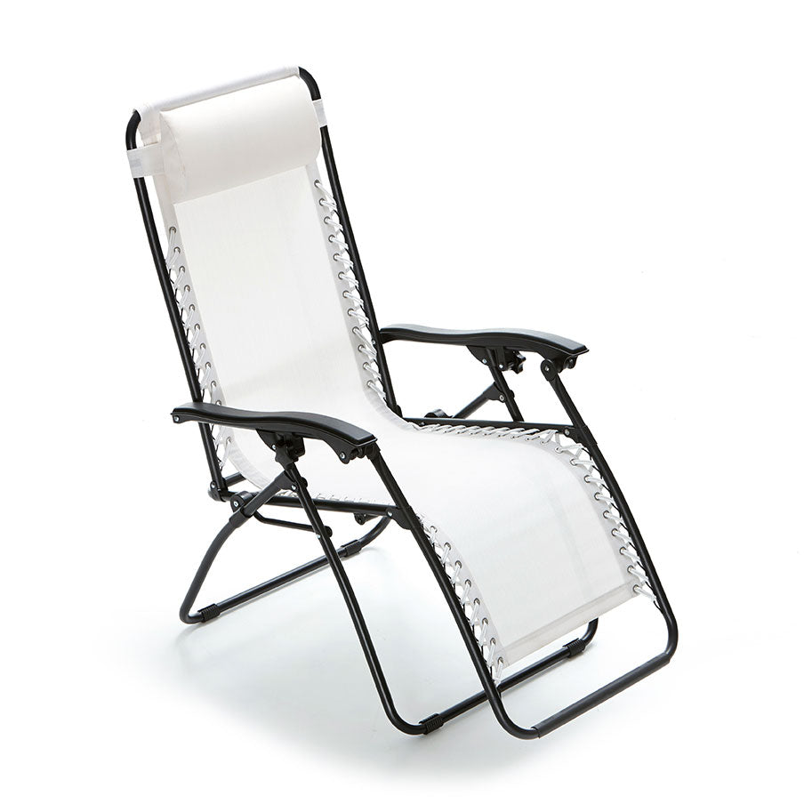 Poltrona Sdraio Zero Gravity da Campeggio Reclinabile e Pieghevole In Ferro e Textilene Con Cuscino Taddei Gran Relax Bianca