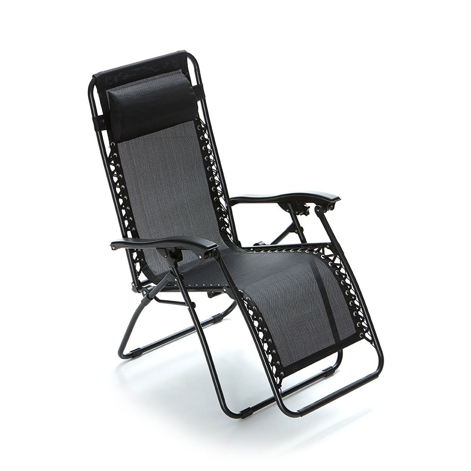 Poltrona Sdraio Zero Gravity da Campeggio Reclinabile e Pieghevole In Ferro e Textilene Con Cuscino Taddei Gran Relax Nera