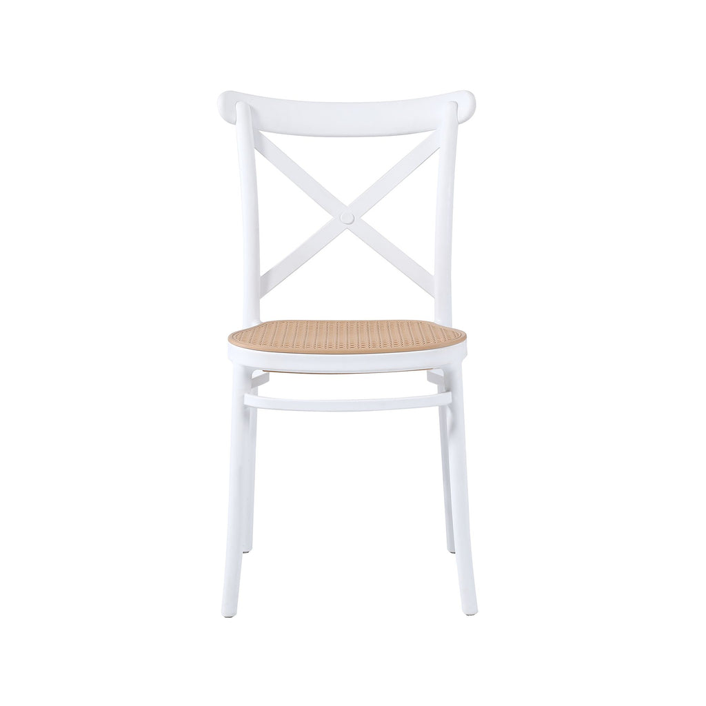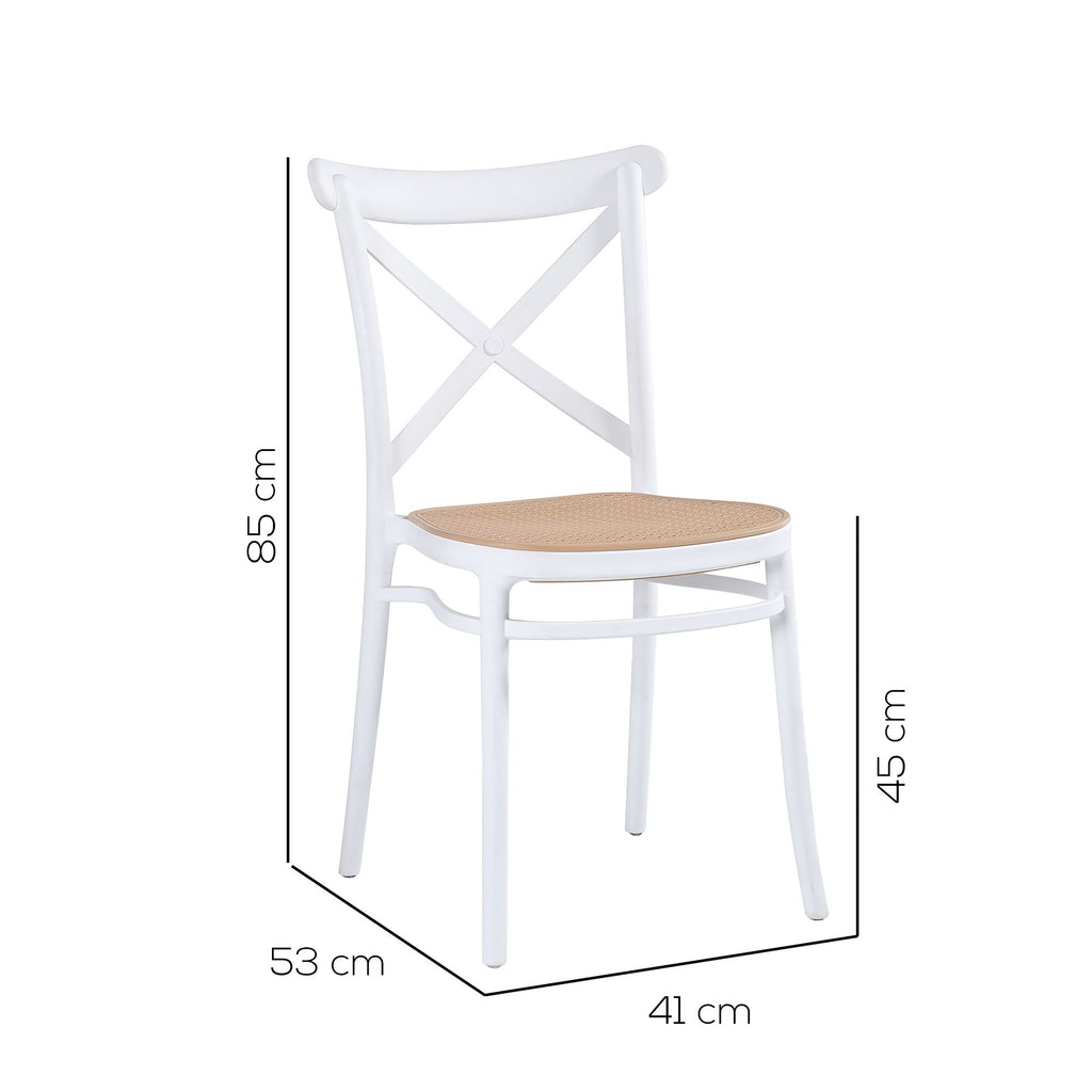 La sedia Tosca, dal design vintage, è resa moderna dal materiale di cui è composta, il polipropilene, che rende questa sedia robusta, leggera e ideale per essere utilizzata sa all'interno sia all'esterno, perfetta anche per bar e ristoranti. Il suo design ricorda quello delle sedie classiche e dallo stile country, il comodo schienale presenta una fascia superiore, leggermente arrotondata, per abbracciare la schiena, e da due fasce che si incrociano, le gambe sono leggermente arcuate verso l'esterno, rendendo questa sedia stabile e comoda. Il contrasto di colori tre il bianco della struttura e il beige della seduta, leggermente forellato, le offrono un carattere deciso e particolare. La sedia Tosca è l'ideale per chi non vuole rinunciare allo stile classico o country, strizzando l'occhio al design moderno. Scheda tecnica Sedia in polipropilene Dimensioni 53 x 41 x 85 cm