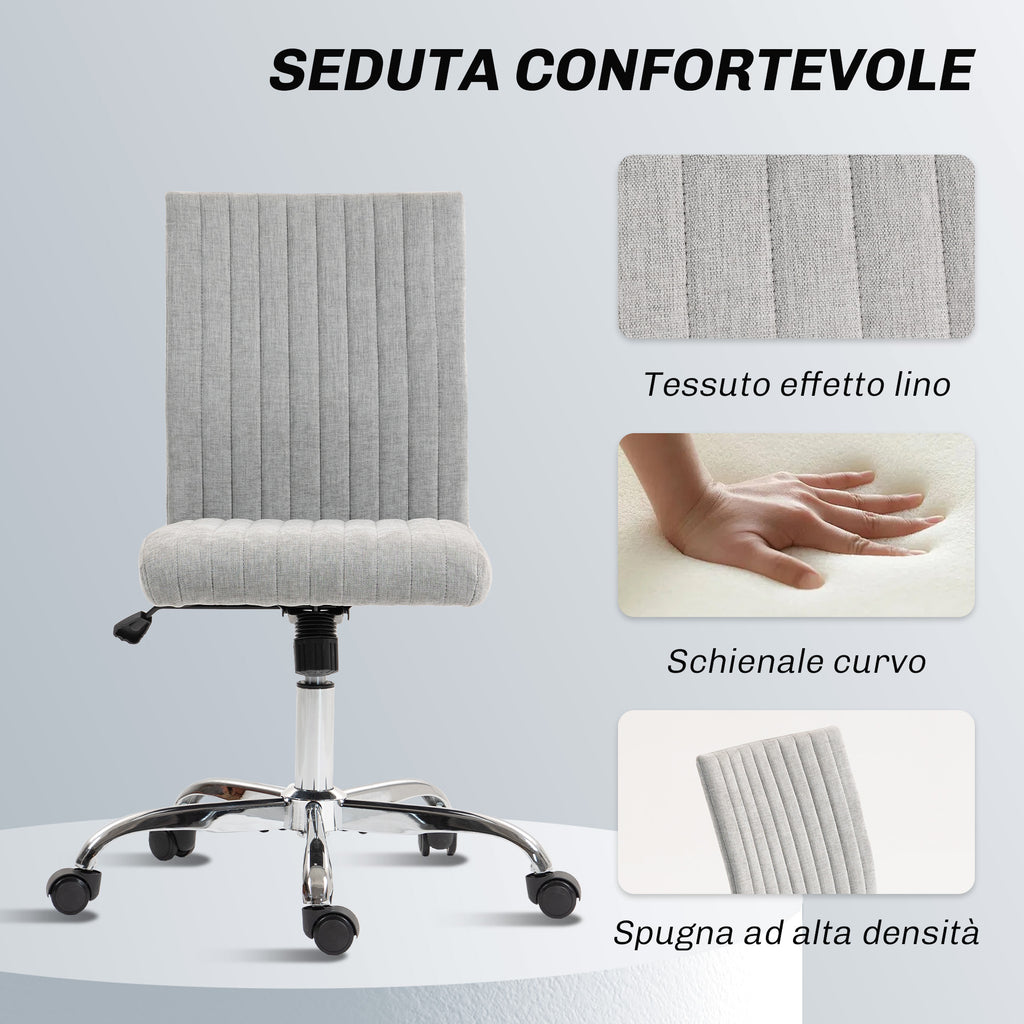 Sedia Ufficio Senza Braccioli 43x56x78-88 cm Girevole con Ruote Rivestimento in Tessuto Grigio