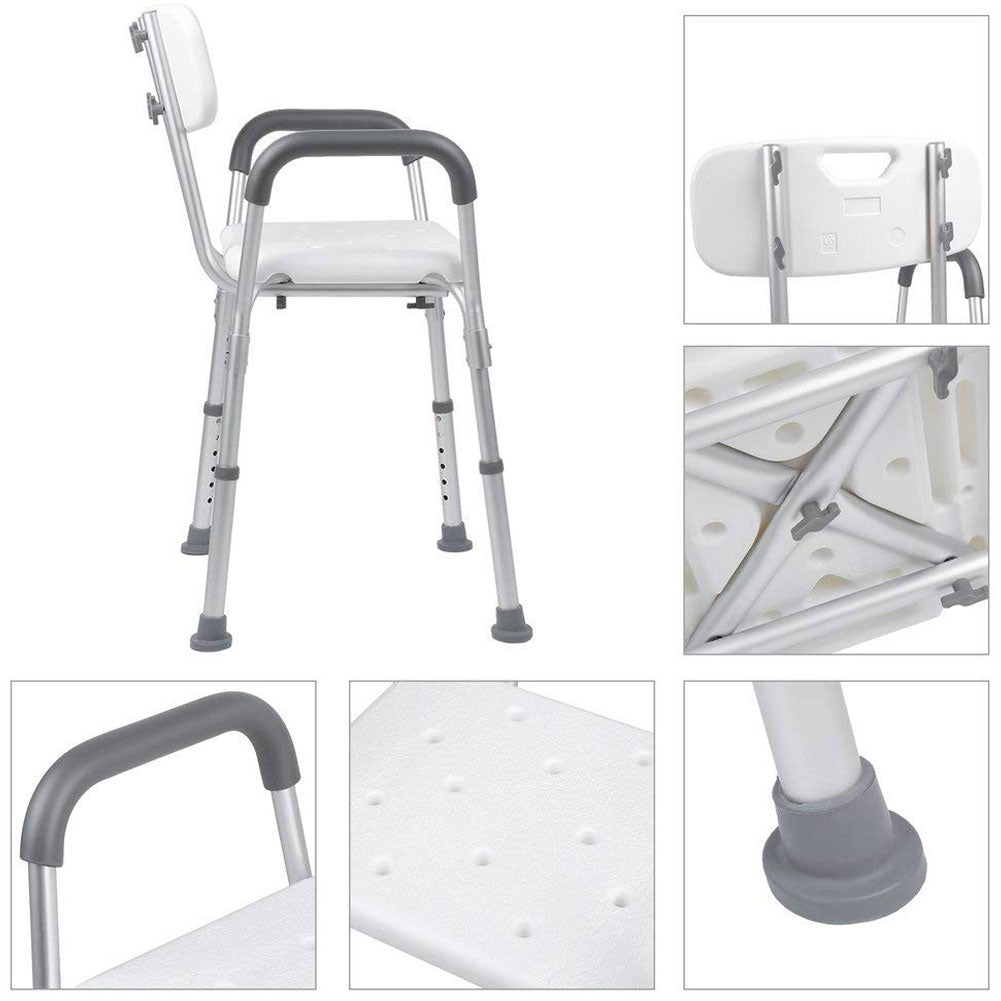 Sedile da doccia con Schienale e Braccioli estraibili Sedia da vasca Anziani