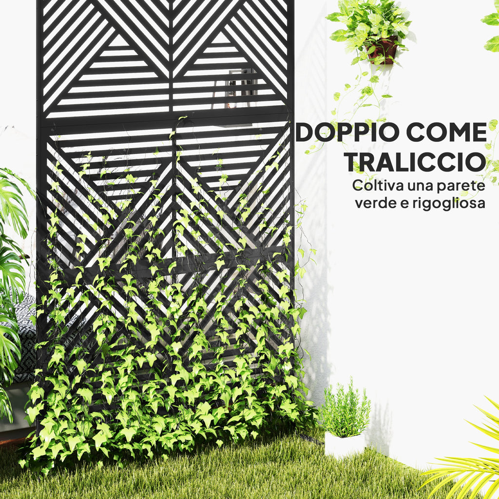 Separé Divisorio da Esterno Decorativo 122x45x198 cm con Traliccio per Rampicanti Nero