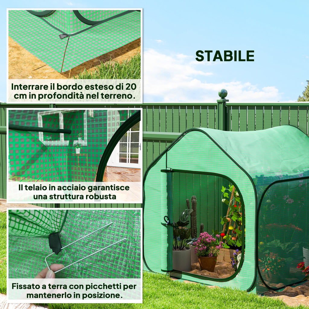 Serra a Casetta Pieghevole 150x148x148 cm con Ingresso a Cerniera Verde