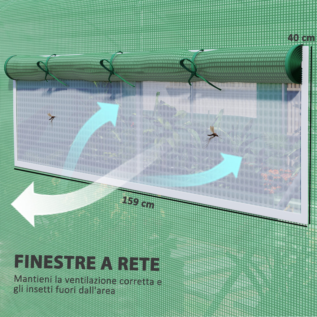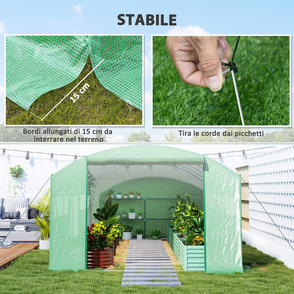 - INGRESSO E VENTILAZIONE: Dotata di tre porte avvolgibili, una anteriore e due laterali, che migliorano l'accesso in questa ampia serra. Include sei finestre a rete per garantire una ventilazione ottimale