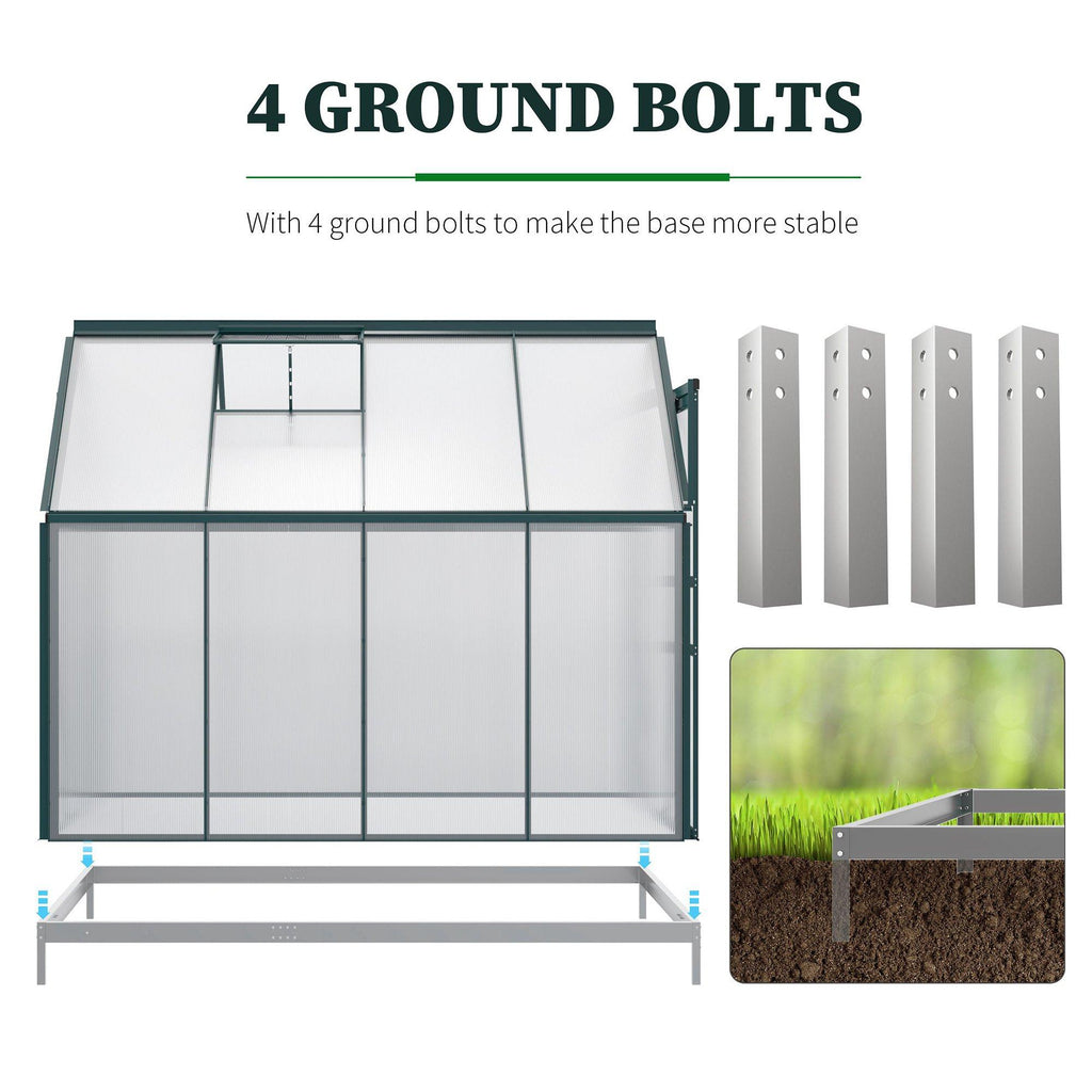 - COSTRUZIONE SOLIDA: Questa serra da giardino è realizzata in lega di alluminio durevole con una base di acciaio zincato che fornisce un solido supporto all'intera struttura. Sono inclusi quattro paletti da fissare nel terreno per una maggiore stabilità.