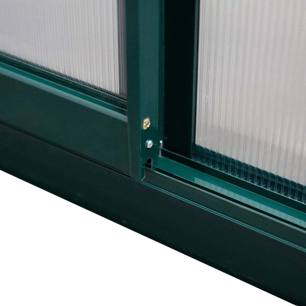- PORTA SCORREVOLE: La porta scorrevole rende facile l'ingresso nella serra in policarbonato ed è solida e resistente come l'intera struttura.