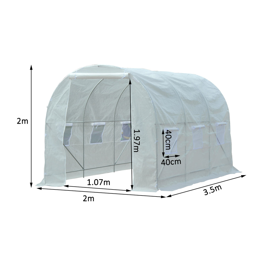 Serra da Giardino a Tunnel Per Piante 350x200x200 cm in PE con Tubi in Ferro Bianco