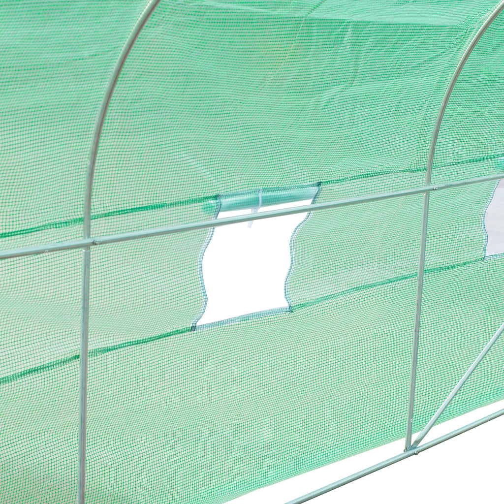 È realizzata con unrobusto telaio in tubi d'acciaio e una durevole copertura in PE che permette di proteggere le coltivazioni dalla pioggia e dal vento.