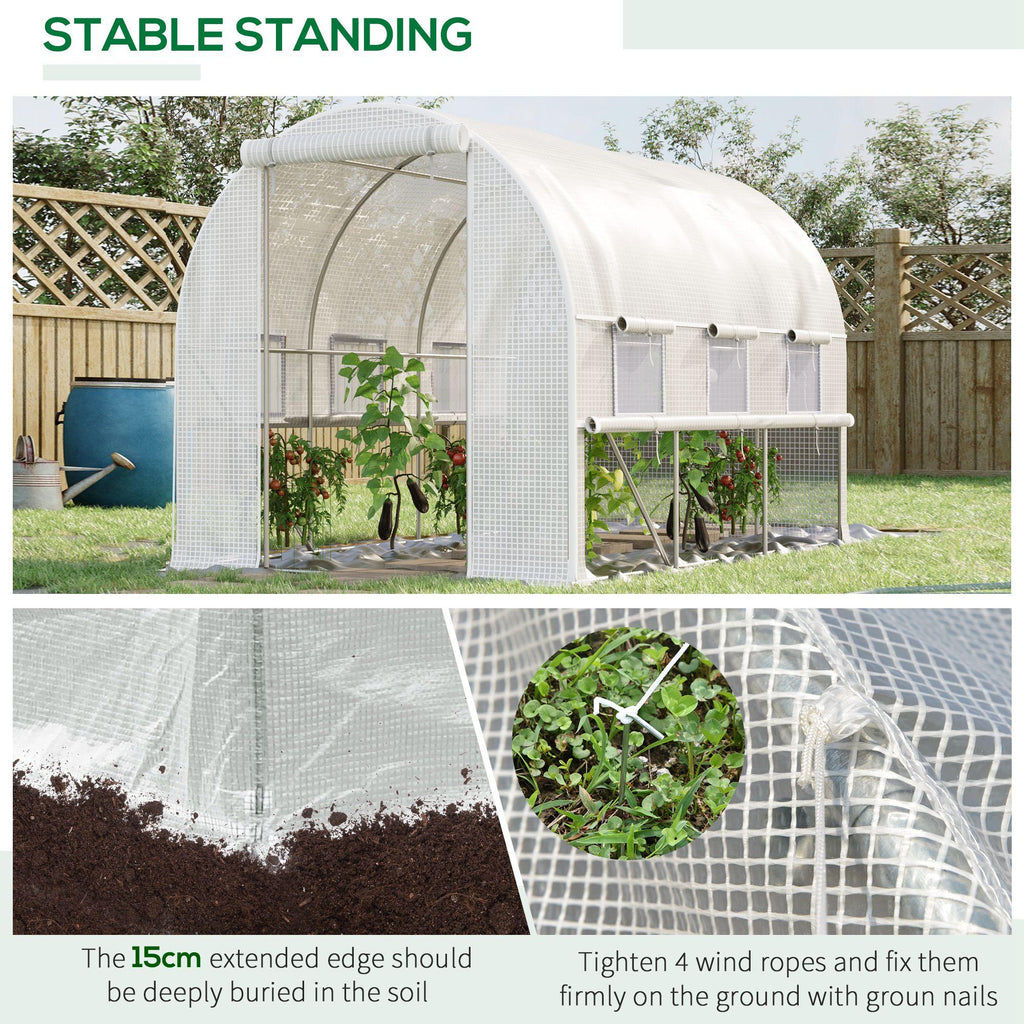 Questa serra per orto è perfetta per il giardinaggio domestico! La serra a tunnel offre tutta la protezione di cui le tue piante necessitano, grazie alla sua struttura in acciaio e alla copertura in PE. Le finestre dotate di rete interna offrono un'eccellente ventilazione, mentre il design delle comode porte avvolgibili consente un facile accesso all'interno. La serra per piante è la soluzione ideale per mantenere in forma le vostre piante durante tutto l'anno.