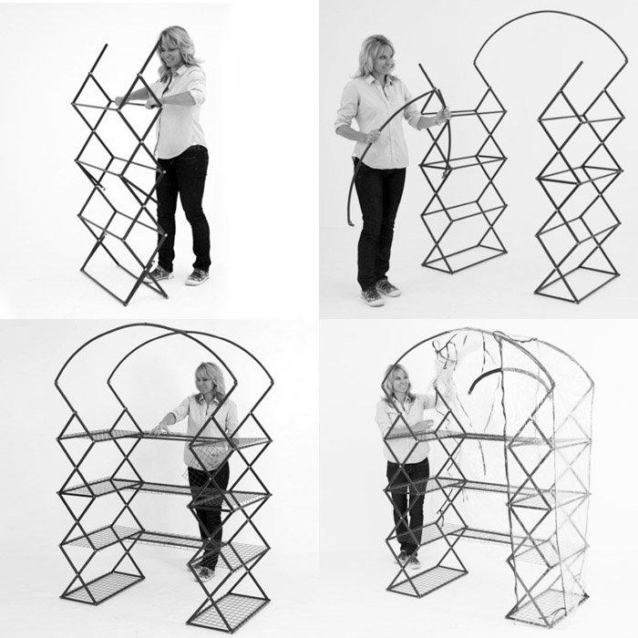 Serra pieghevole in tubo di metallo verniciato.Non necessita assemblaggio grazie alla struttura a traliccio.