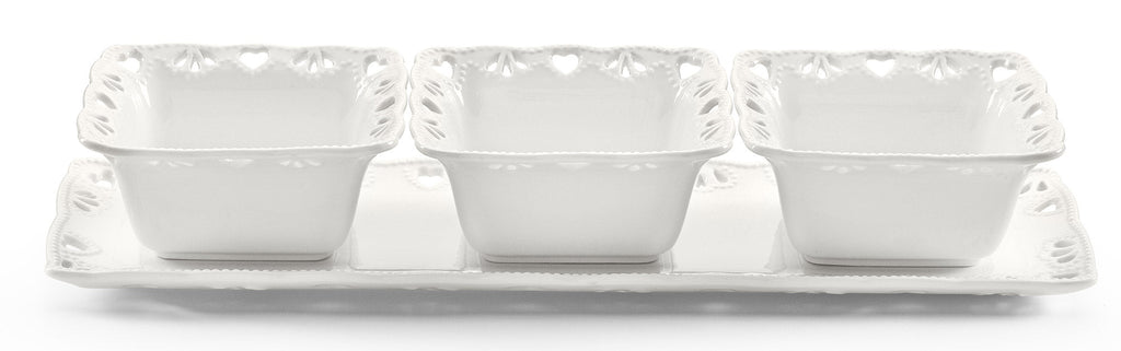 Caratteristiche Tecniche Servizio Aperitivo Vassoio e 3 Coppette in Porcellana Kaleidos Juliet Bianco