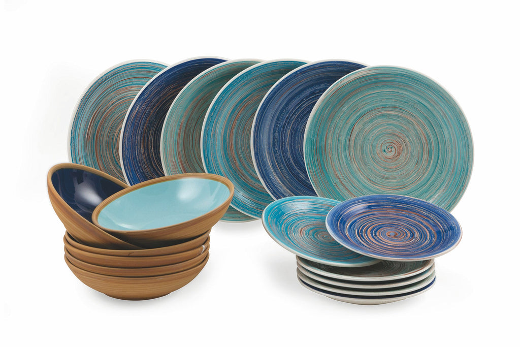 Servizio Piatti 18 Pezzi in Gres Multicolor Villa d'Este Home Tivoli Terra Mar